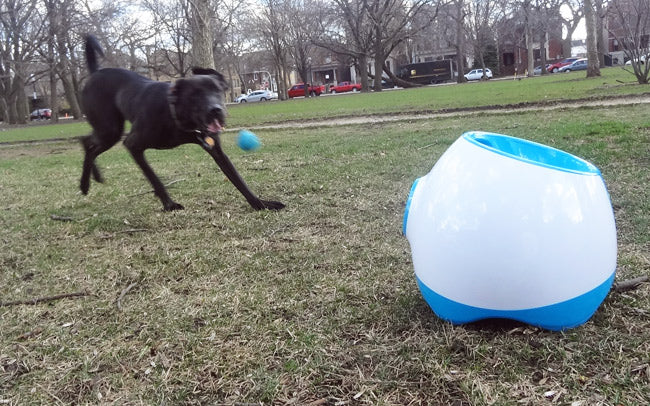 Comes with three 2.5” Tuff standard-sized tennis balls. Features a built-in rechargeable battery and an AC charger (included). Great mental and physical exercise for your pet. Durable, high-quality design and construction.