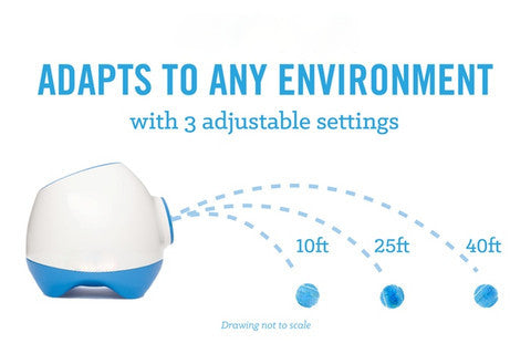 Automatic ball launcher. Adjustable launch distance of 10, 25 or 40 feet. Great for indoor or outdoor use. Click on the video play button below for more details.