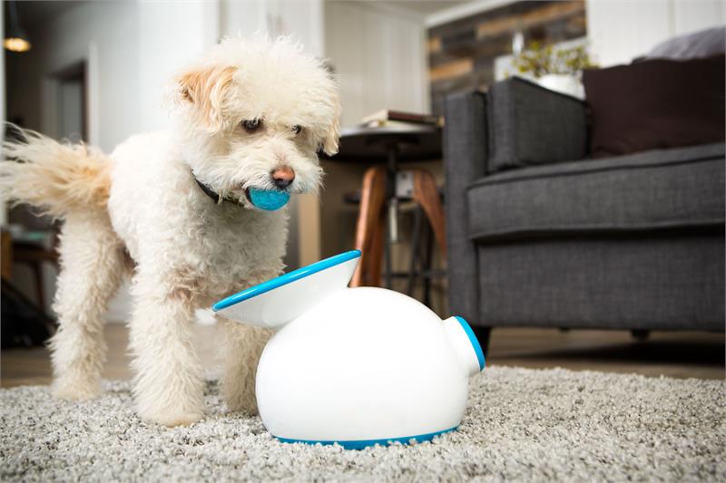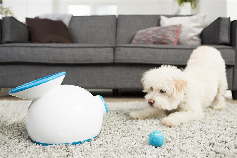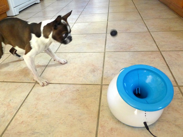 Comes with three 1.6” miniature tennis balls. Runs on AC adapter (included) or 6 C-cell batteries (batteries not included). Great mental and physical exercise for your pet. Durable, high-quality design and construction.