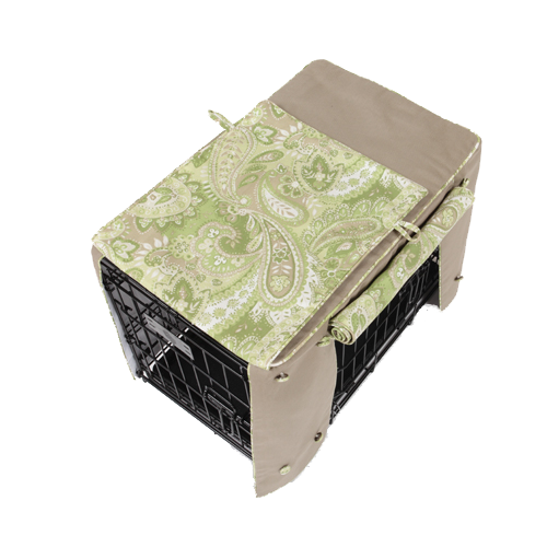 A soft and neutral combination of Classic Khaki coordinated with Green Tea Cording. Green Tea is a paisley print with lime green hue, white, khaki and moss green.