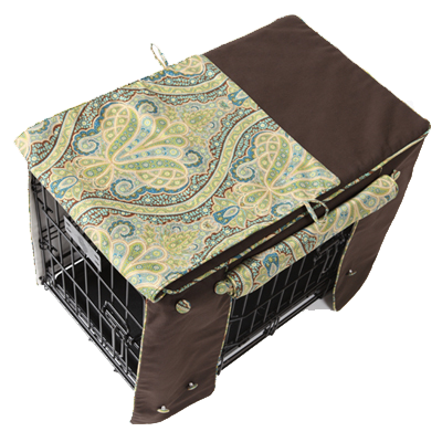 A deep chocolate color in soft cotton twill with Manali Aqua fabric. Manali Aqua is a gorgeous paisley print of aqua, deep ocean blue and dark chocolate swirl hues.