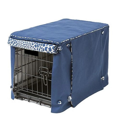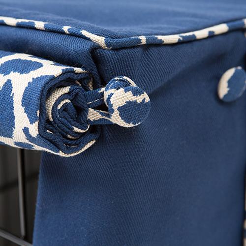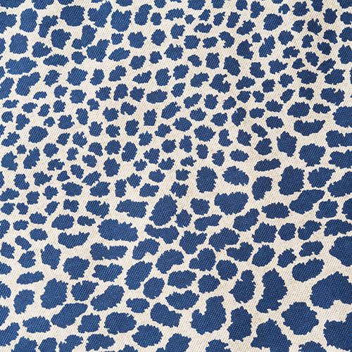 Indigo Blue accented with Leopard print twill cording, buttons and loops.