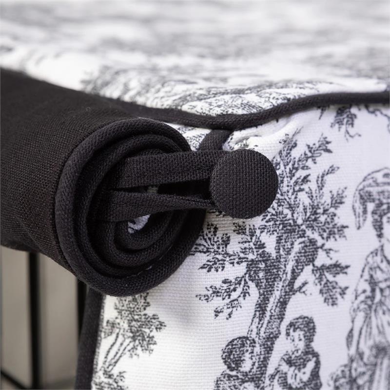 An artistic and beautiful rendering of the rustic country life, accented with cotton black twill cording, buttons and loops.