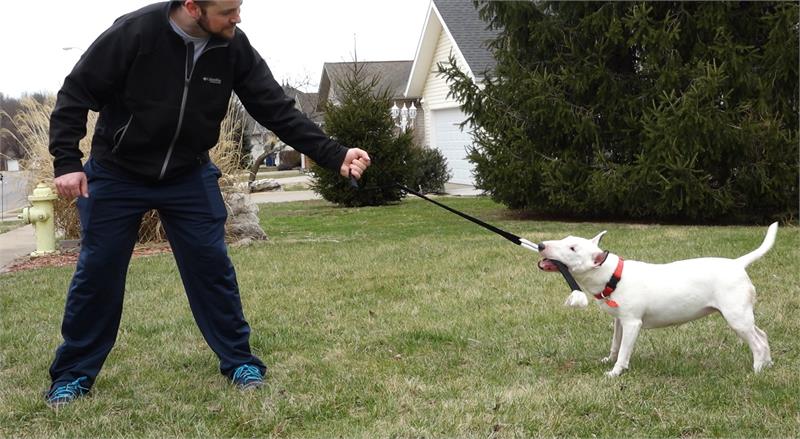Play tug-of-war without the strain on your arm and shoulder. The soft rubber handle and easy flex technology lets your dog play rough with minimal exertion on your upper body. Great for indoor and outdoor play time with your dog!